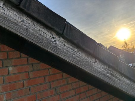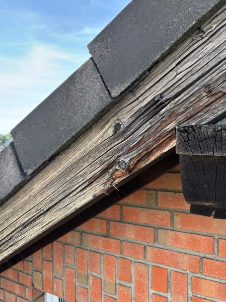 Hier seht ihr ein klassisches Beispiel dafür, was passiert, wenn sichtbare Holzteile am Dach (wie z. B. Ortgangsparren oder Ortgangbretter) über Jahre ungeschützt der Witterung ausgesetzt sind. 🌧☀️❄️