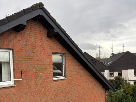 Sichtbare Holzteile sollten regelmäßig gestrichen oder – noch besser – dauerhaft verkleidet werden, z. B. mit Zink, Aluminium oder Schiefer. Das sieht nicht nur ordentlich aus, sondern spart auf lange Sicht richtig Geld und Ärger.